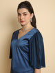 Trendy Dopamine top in silk. Having full sleeves and one off shoulder pattern.